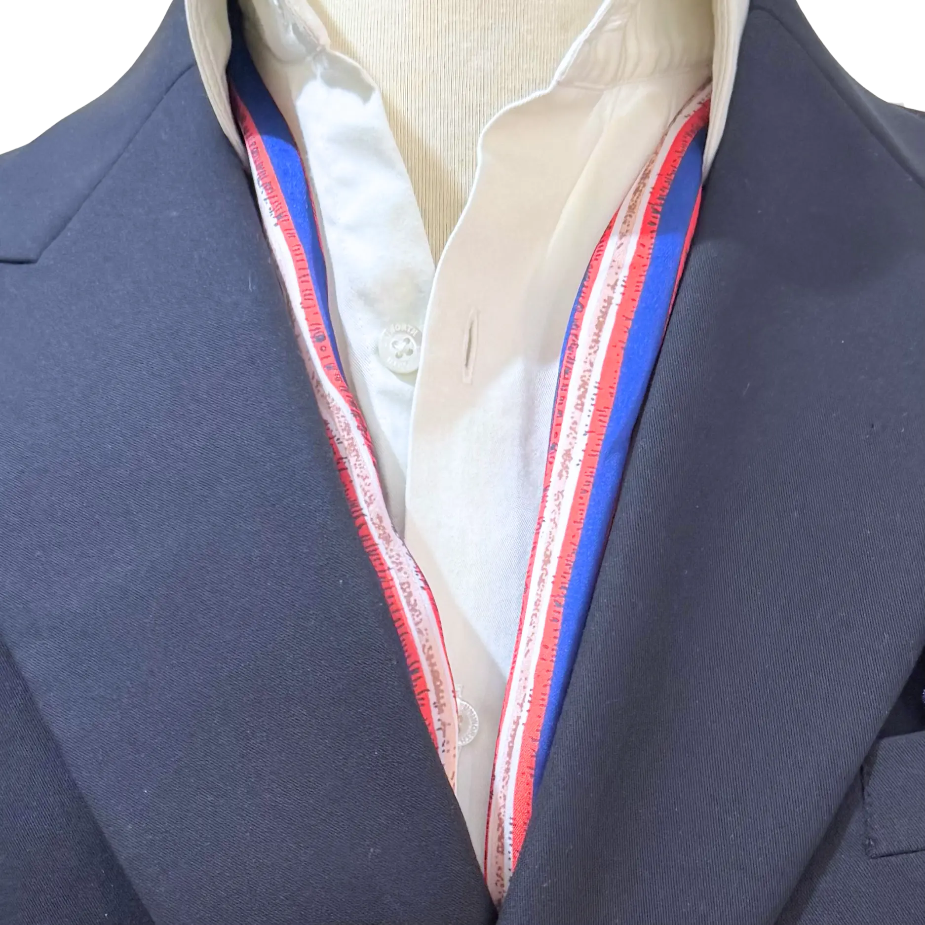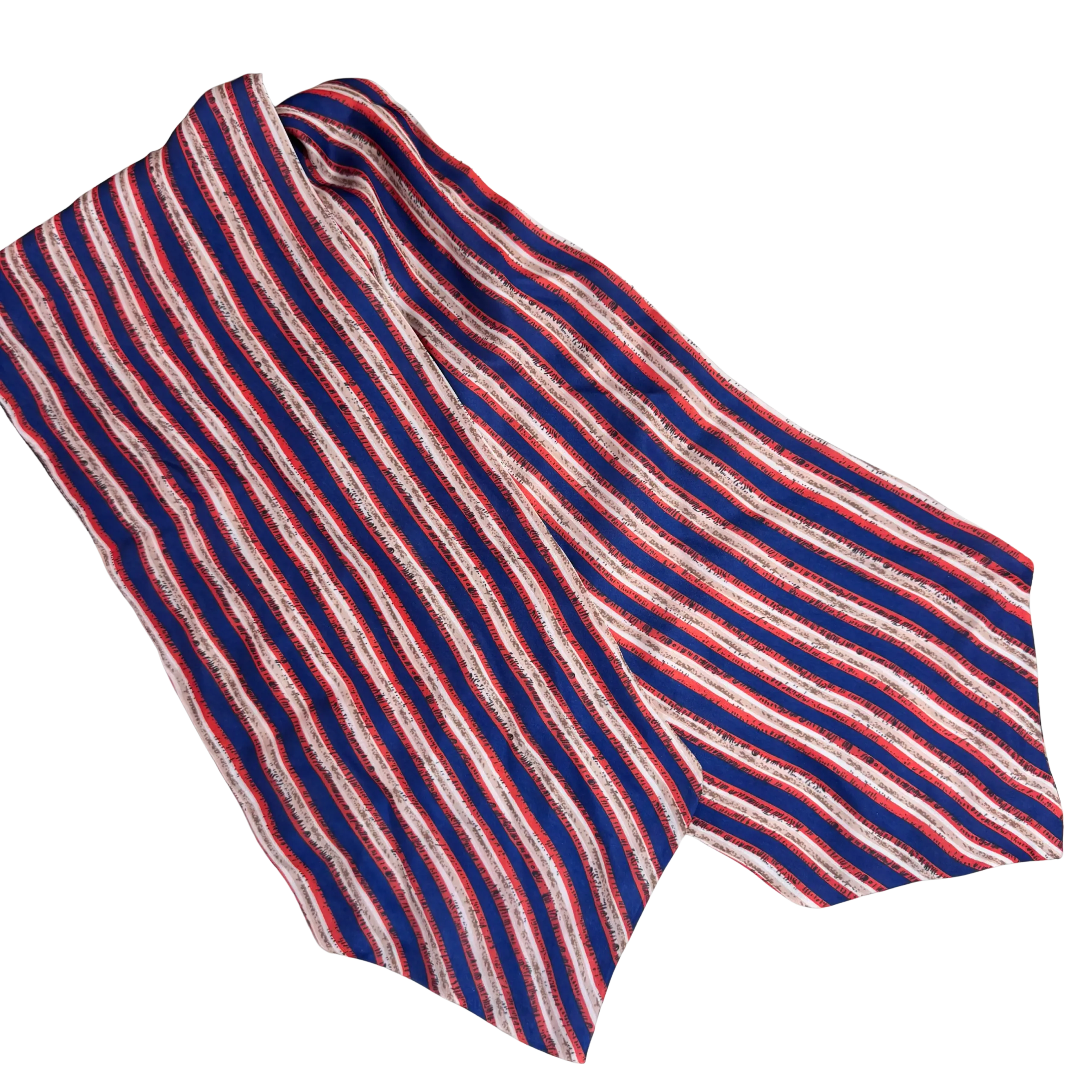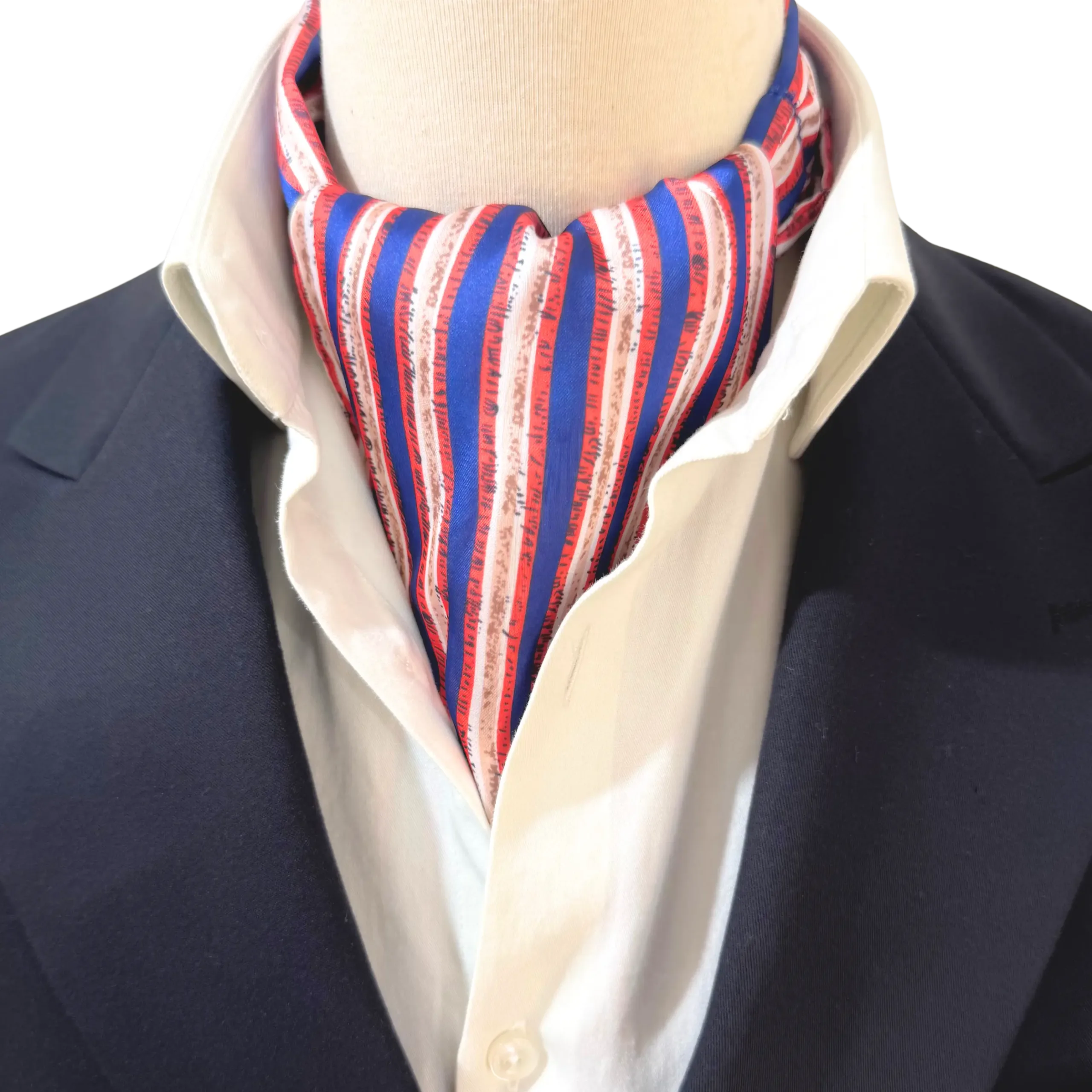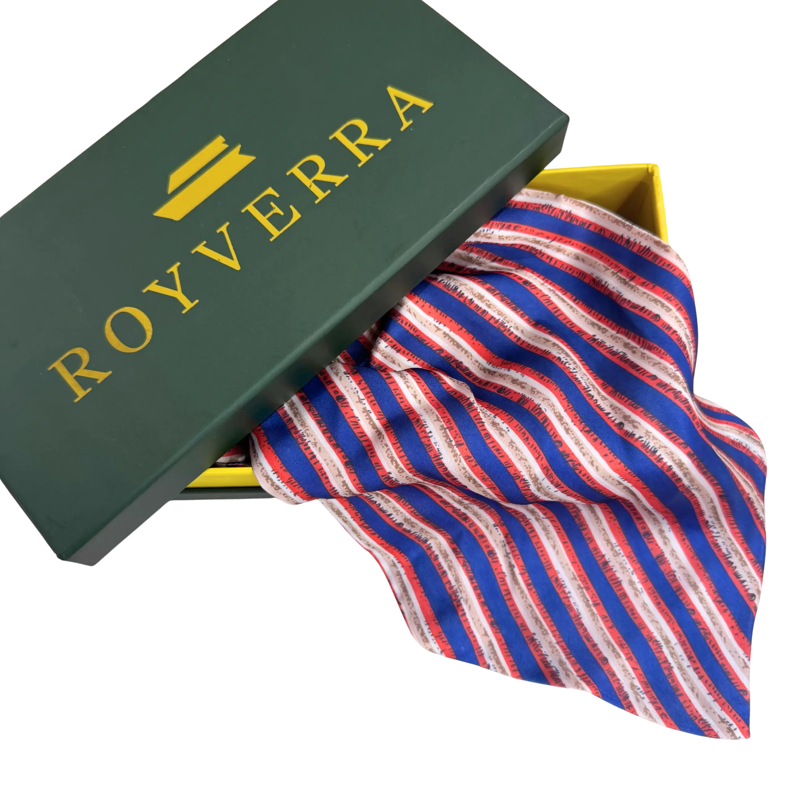 Elevate your style with the Royverra Nautical Stripe Ascot tie in Royal Blue, Rosso Red & Bianco White Silk. A statement piece for the discerning gentleman who values Italian-inspired design and unparalleled comfort.
