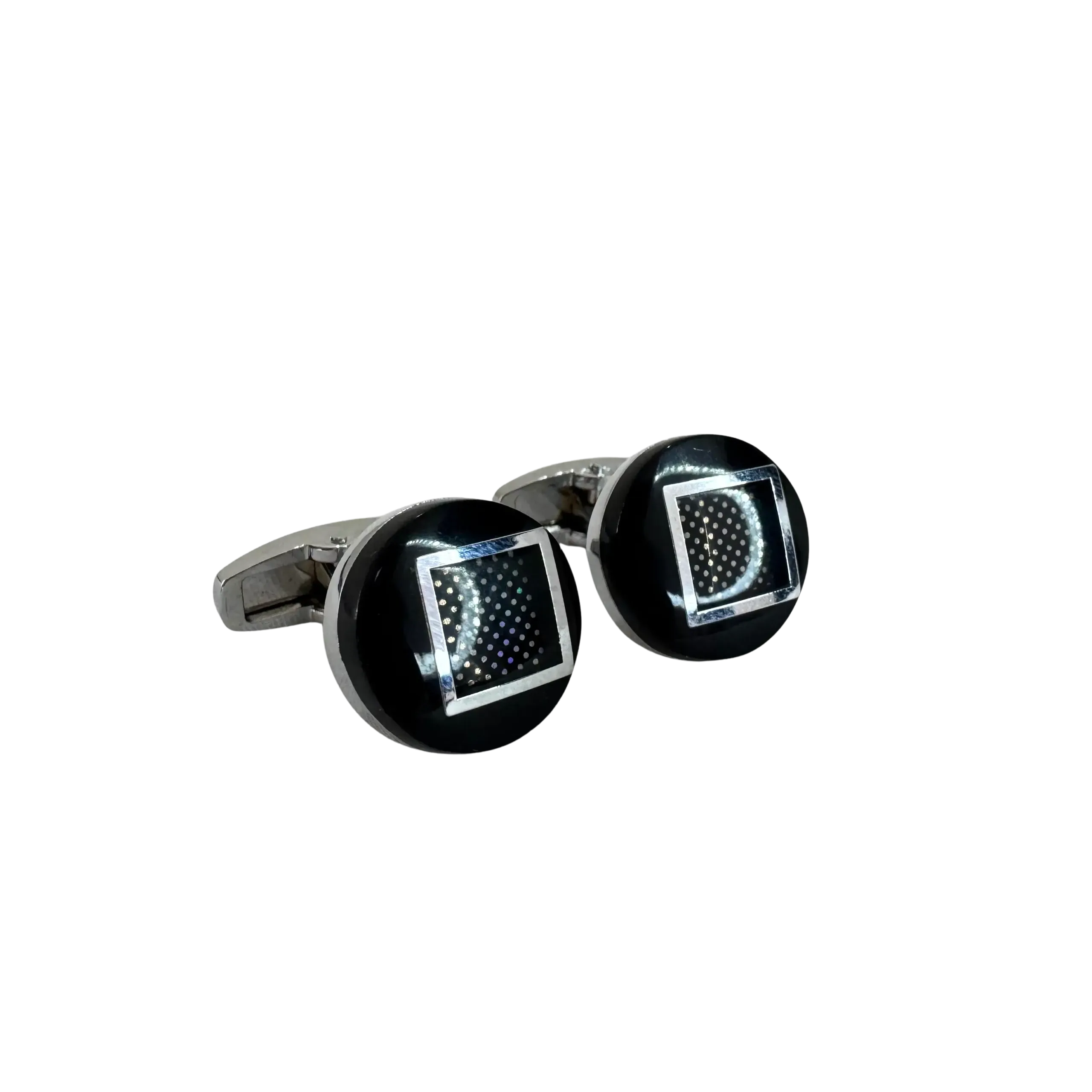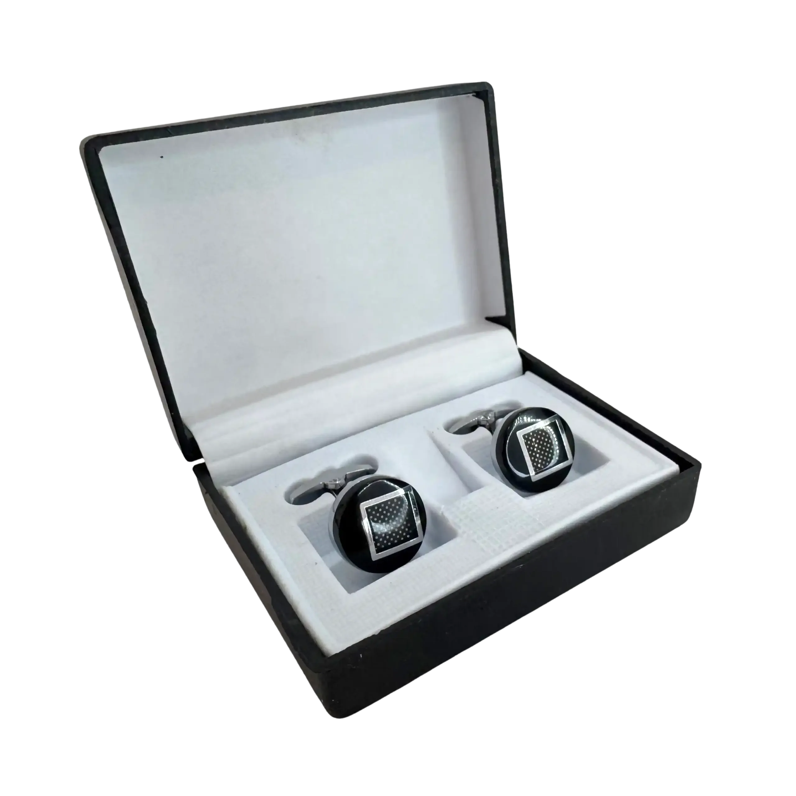Enhance your look with these premium black cufflinks, crafted with precision for gentlemen who value timeless elegance. Their sleek silver and black design pairs seamlessly with any dress shirt or suit, making them an ideal accessory for formal events, business engagements, or as a distinguished gift.