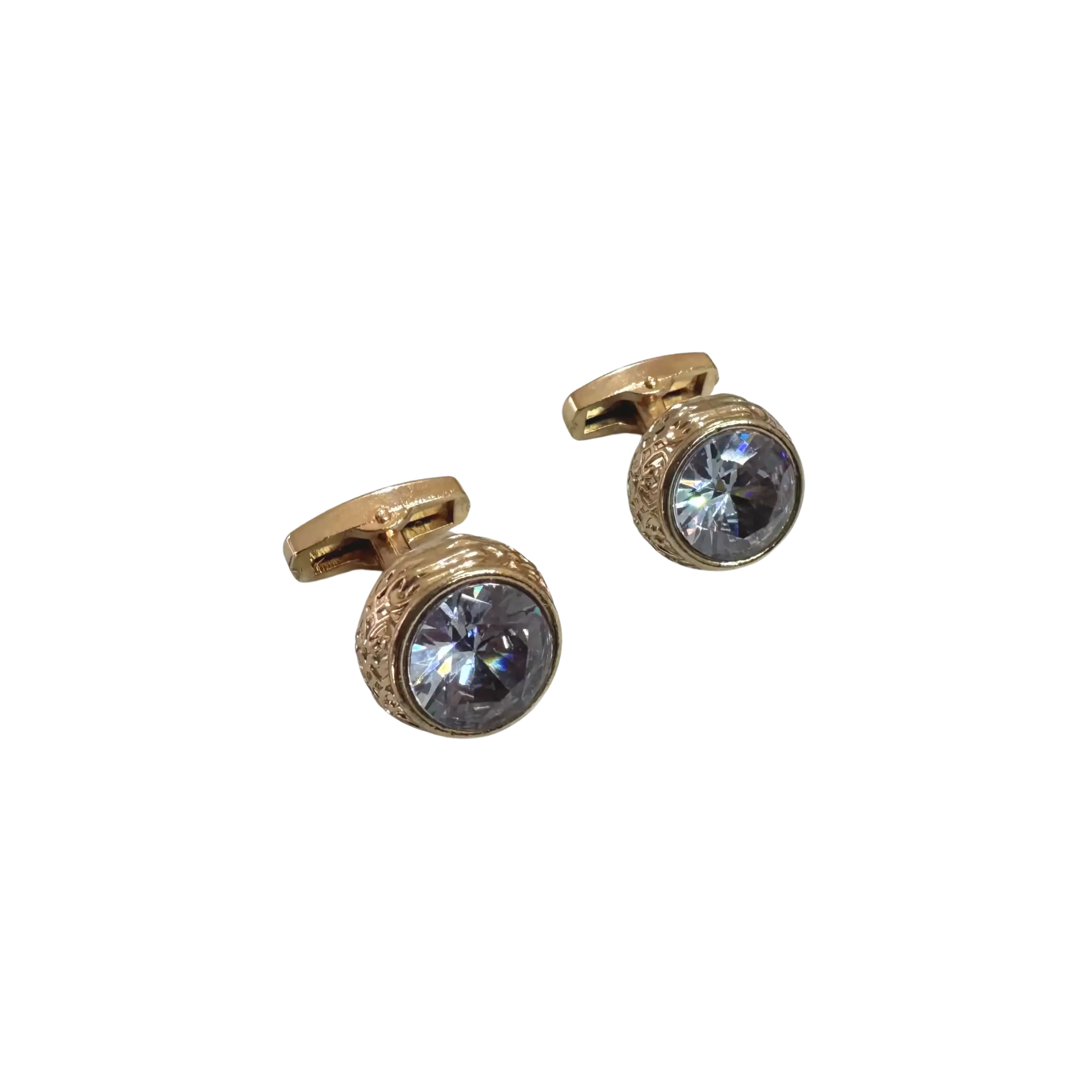 Royverra’s King of Luxury Golden Cufflinks embody majestic elegance and premium craftsmanship. These round-shaped cufflinks feature a striking large sparkling stone set atop a uniquely detailed gold-tone metal surface inspired by regal crown designs. Perfect for the sophisticated gentleman, the intricate metalwork adds a royal touch to any formal outfit, whether for weddings, corporate events, or special occasions. Elevate your style with these kingly cufflinks designed to make a bold statement and showcase impeccable taste