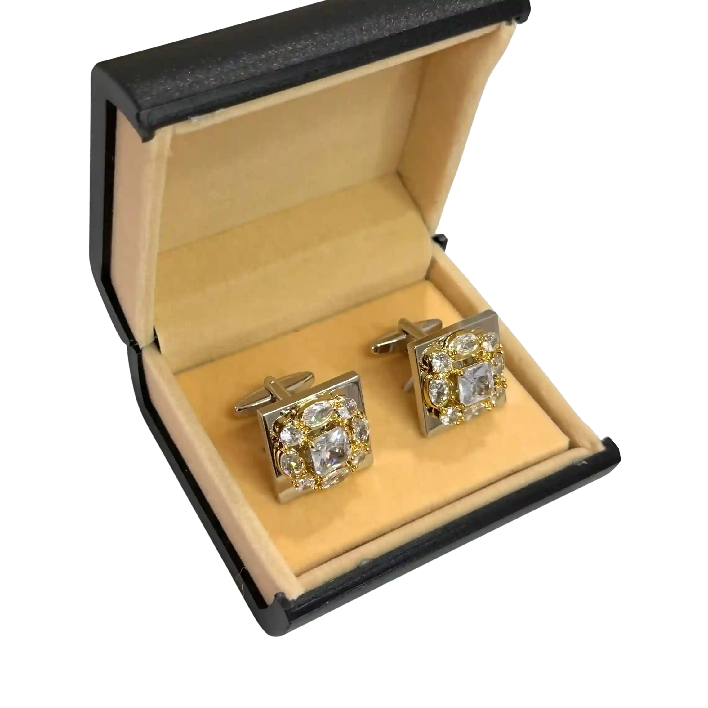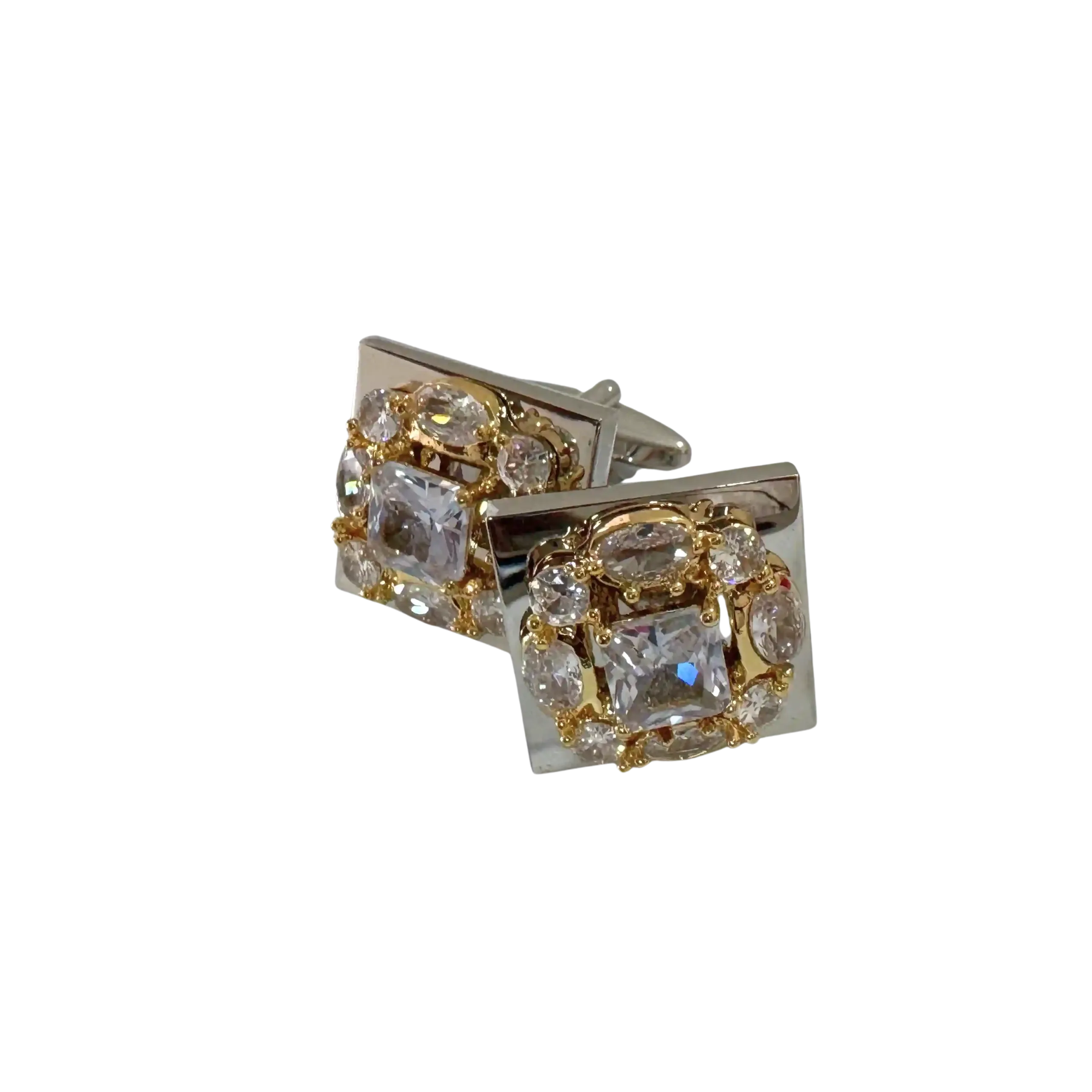 Discover Royverra’s premium golden cufflinks adorned with dazzling white shiny stones, crafted to bring timeless elegance and luxury to any formal wardrobe. These cufflinks boast a high-quality gold-tone finish that enhances the brilliance of the sparkling clear stones, creating a refined accessory perfect for the discerning gentleman. Designed to catch the light and add sophistication to business suits, weddings, or elegant events, they combine classic style with contemporary opulence. These cufflinks are a must-have for men who value superior craftsmanship paired with striking design.